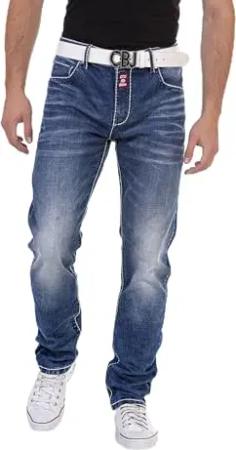 Herren CD704 Jeanshose Denim Kontrastnähte Straight Fit Regular Jeans Hose Pants Blau