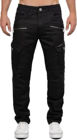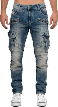 Herren Jeans Hose Cargo Taschen Skinny Biker Denim Design Pants Rippen Details Jeanshose mit Reißverschlüsse Blau W30 L34