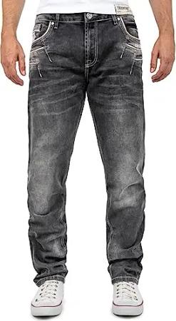 Herren CD148 Herren Bequeme Jeans mit Kontrastnähten in Straight Fit
