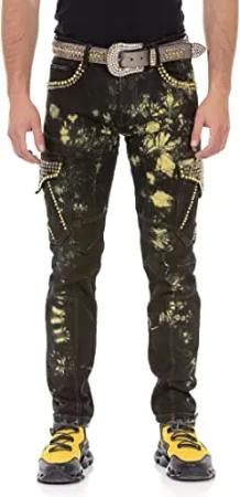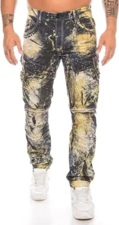 Herren Jeans Hose Cargo Nieten Regular Fit Pants Denim Jeanshose Pants CD677 Gelb W31 L34