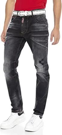 Herren Jeans Hose Denim Pants CD666 Schwarz Straight Fit Freizeithose W42 L32
