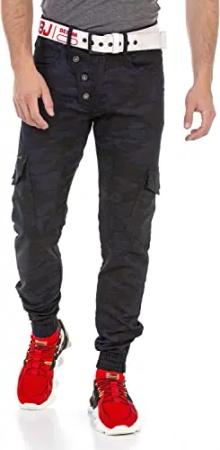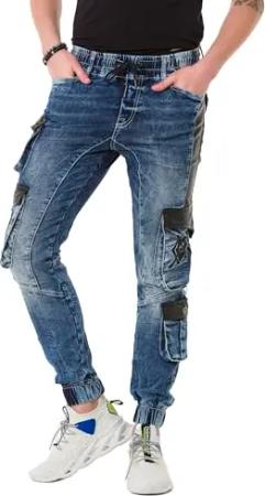 Herren Jeanshose Denim Jogger Cargo Hose Camouflage Pants CD690 Blaucamouflage W31 L34