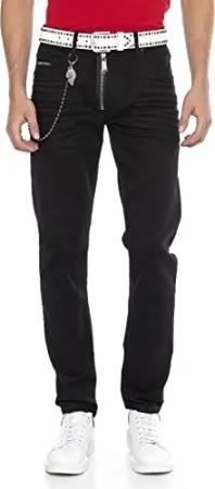 Herren Jeans Hose Klassisch Kette Straight Fit Denim Pants CD675 Schwarz W42 L34