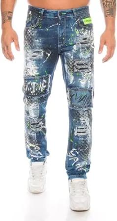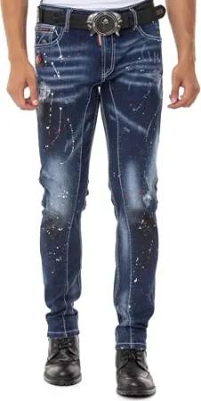 Herren Jeans Hose Straight Fit Denim Farbkleckse Regular Fit Jeanshose CD783 Blau W32 L32