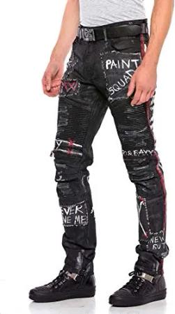 Herren Jeanshose Hose Denim Destroyed Regular Fit Graffiti Design Straight CD700 Schwarz W30 L34