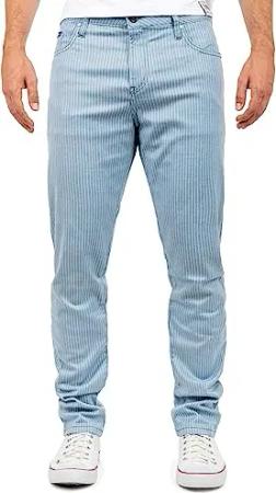 Herren Ausgefallene Jeans Hose Fashion Used Design Pants gestreift mit Gummibund Blau W30 L34