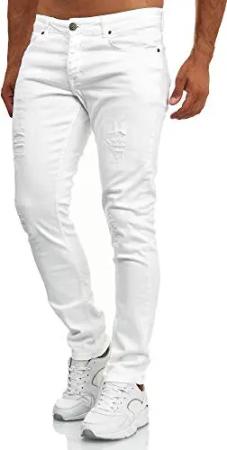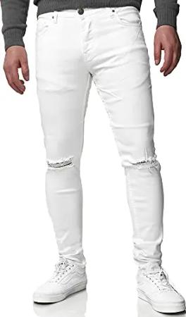 Slim Fit Herren Destroyed Look Stretch Jeans Hose Denim 16525 (Weiß, 32W/36L)