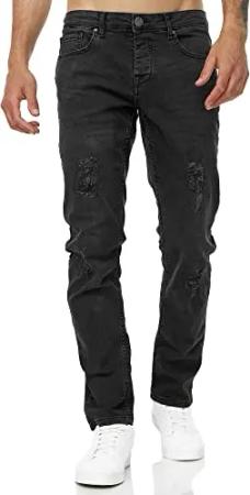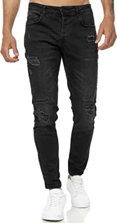 Jeans Slim Fit Herren Jeanshose Stretch Hose Denim Tapered Destroyed Look A109 (Schwarz, 31)