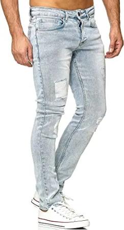 Jeans Skinny Fit Herren Jeanshose Stretch Designer Hose Denim 19534 (Blau, 31W/32L)