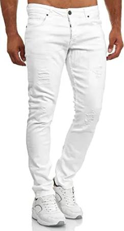 Jeans Herren Slim Fit Stretch Jeanshose Hose Denim Destroyed Look 16525 (38W/32L, Weiß)