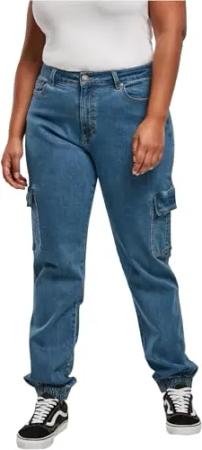 Damen Ladies Organic Stretch Denim Cargo Pants clearblue Washed, 33