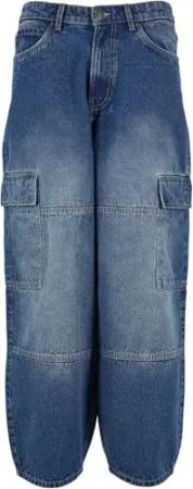 Herren Heavy Ounce Baggy Fit Jeans – Weite Denim Hose im Loose Fit aus Baumwolle, Wide Leg Jeans im 90s Streetwear Style für Freizeit & Alltag,New Mid Blue Washed,38