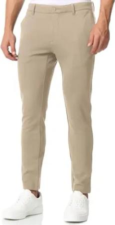Herren Nolan Chino Hose mit 5 Taschen aus 98% Baumwolle |Stretch Pants für Männer Greige, 36/34