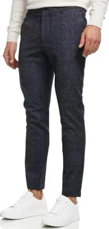 Herren JFLeo Chino Stoffhose mit 4 Taschen | Chinohose Herrenhose Stretch Hose Navy Check, 34/32