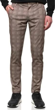 Herren JFLeo Chino Stoffhose mit 4 Taschen | Chinohose Herrenhose Stretch Hose Brown Check, 31/32