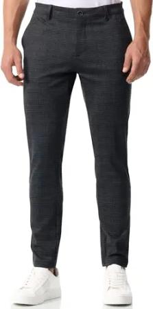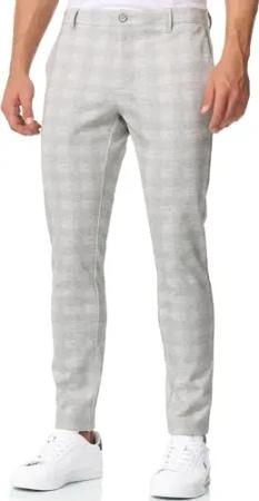 Herren JFLeo Chino Stoffhose mit 4 Taschen | Chinohose Herrenhose Stretch Hose Grey Check, 30/34