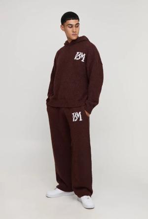 Bouclee-Trainingsanzug mit Logo und Kapuze - Braun - S, Braun