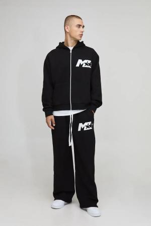 Plus Oversized Boxy Man Print Hoodie & Baggy Fit Jogger Tracksuit - Blau - 2XL, Blau