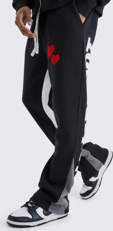 Jogginghose - Freiburg - Bund & Seite - Druck rot - Trainingshose Größe L schwarz