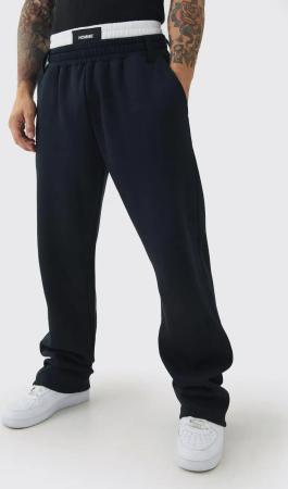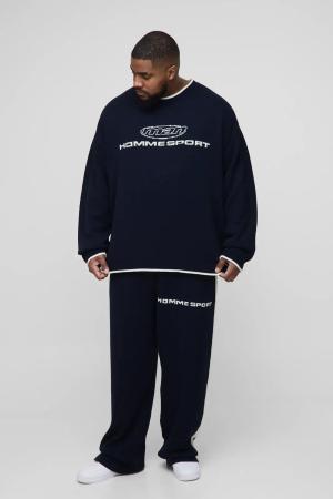 Plus Regular Fit Homme Stripe Tricot Split Hem Joggers - Navy - 3Xl, Navy