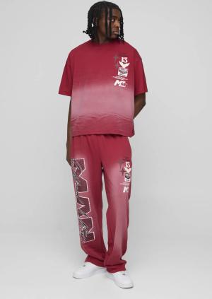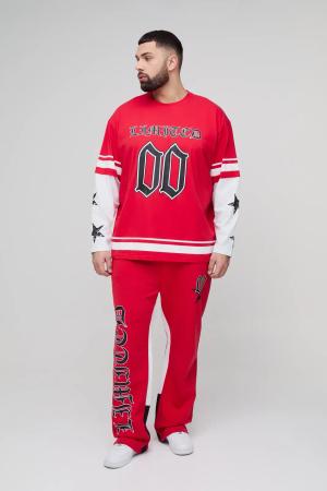 Plus T-Shirt und Jogginghose mit Limited Print - Rot - XXXL, Rot