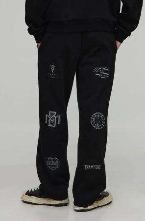 Lockere Jogginghose mit Nadelstreifen und LA-Applikation - Schwarz - S, Schwarz
