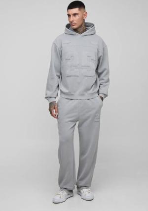 Kastiger Oversize Trainingsanzug mit Applikation und Reißverschluss - Grau - XL, Grau