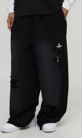 Extreme Wide Leg Spray Washed Faux Boxer Jogger - Black - M, Black
