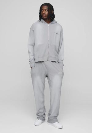 Kastiger Oversize Man Trainingsanzug In Waffeloptik Mit Kapuze Und Reißverschluss - Grey - L, Grey