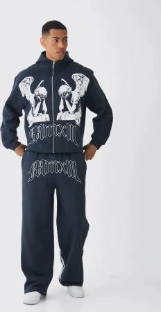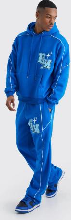 Kastiger Oversize Trainingsanzug Mit Print - Cobalt - S, Cobalt