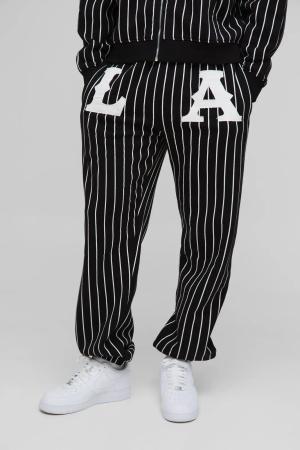 Lockere Jogginghose Mit Nadelstreifen Und La-Applikation - Black - M, Black