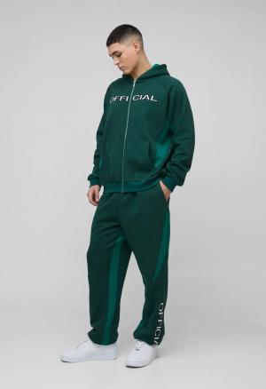 Oversize Colorblock Trainingsanzug Mit Official-Stickerei Und Reißverschluss - Green - M, Green