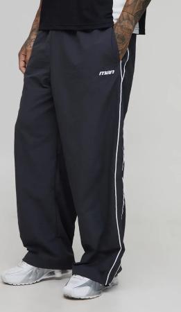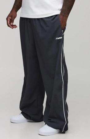 Plus Stripe Embroidered Parachute Trousers - Charcoal - 2Xl, Charcoal