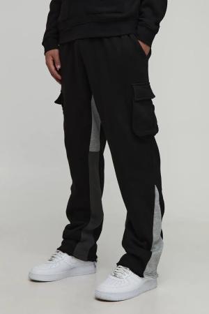 Man Active Colour Block Cargo Joggers - Black - L, Black