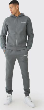 Slim-Fit Official Trainingsanzug Mit Reißverschluss Und Mesh-Einsatz - Dark Grey - M, Dark Grey