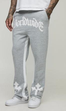 Tall Schlag-Jogginghose Mit Worldwide Kreuz-Print - Grey Marl - M, Grey Marl