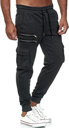 Herren Cargo Jogginghose Jogger Hose Trainingshose Double Zip M4246 Anthrazit S