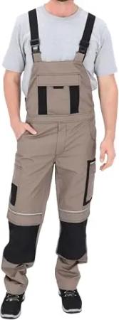 Latzhose Herren mit Stretch – Lange Arbeitshose für Männer mit Werkzeugtaschen – Robuste Arbeitskleidung für Handwerk, Bau & Heimwerker – bequem & strapazierfähig - Beige - 46