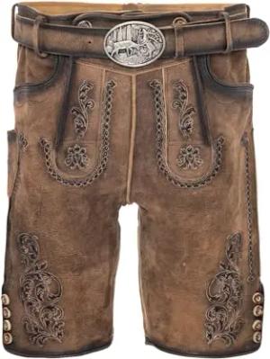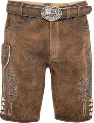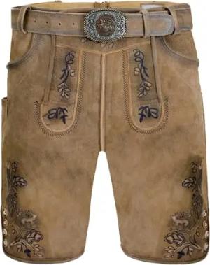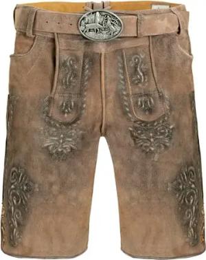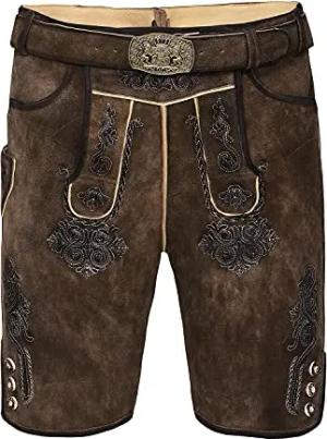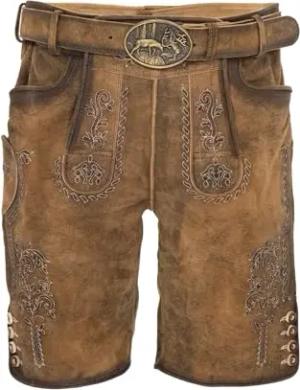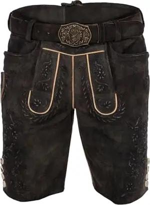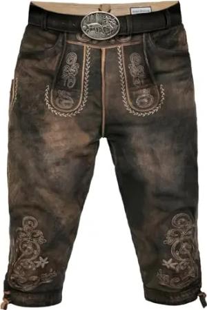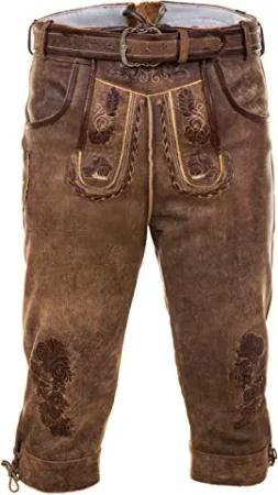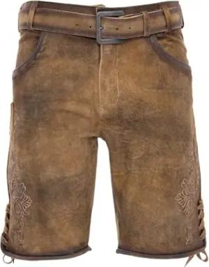 Trachten Lederhose Herren Kurz mit Gürtel - Kurze Trachtenhose - bayerische Trachtenlederhose - Oktoberfest Tracht Hose Braun 507 Gr. 54