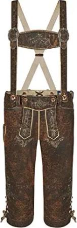 Trachten Kniebundhose Jeans Hose mit Hosenträgern (DE/NL/SE/PL, Numerisch, 56, Regular, Regular, Dunkelbraun)