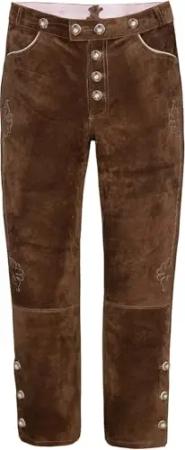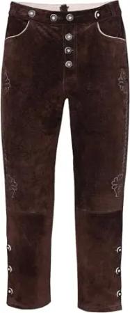 Lange Trachtenlederhose aus Rindveloursleder in schwarz, mittelbraun oder Dunkelbraun Gr. 44-68 (DE/NL/SE/PL, Numerisch, 46, Regular, Regular, Mittelbraun)