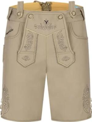 Kurze Trachten Softshell Hose mit Träger im Lederhosen Look - Lukas - Lederhose Herren Tracht - Wasser- und windabweisend mit Trägern für Oktoberfest - Beige - 56