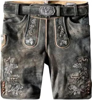 Kurze Wildbock Lederhose Maxl grau mit edler Stickerei Gr. 44-64 (DE/NL/SE/PL, Numerisch, 54, Regular, Regular, Grau)