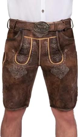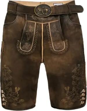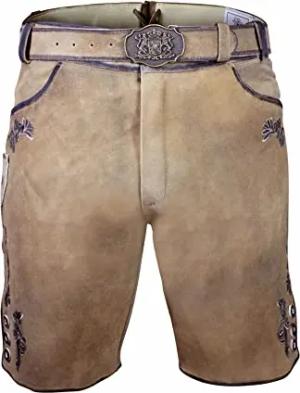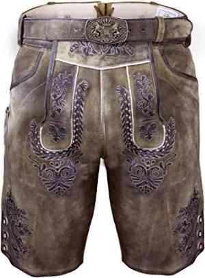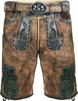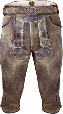 Bayerische Traditionelle Krachlederne Kurze Lederhose Erwin Siberia inkl. Gürtel Gr. 44-62 (54)