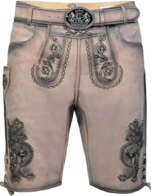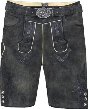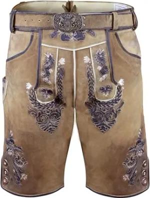 Kurze Wildbock Lederhose Lukas grau mit dunkler Stickerei Gr. 44-64 (DE/NL/SE/PL, Numerisch, 60, Regular, Regular, Beigegrau)