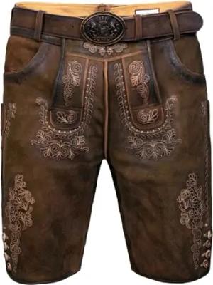 Bayerische Traditionelle Krachlederne Kurze Lederhose Erwin Siberia inkl. Gürtel Gr. 44-62 (60)