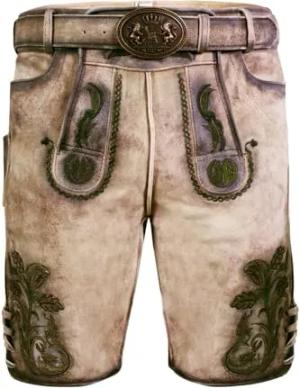 Bayerische Traditionelle Kurze Lederhose Marcel aus Ziegenleder mit aufgesetzer Stickerei inkl. Gürtel Gr. 56