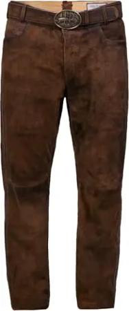 Lange Trachtenlederhose aus Rindveloursleder in schwarz, mittelbraun oder Dunkelbraun Gr. 44-68 (DE/NL/SE/PL, Numerisch, 46, Regular, Regular, Mittelbraun)
