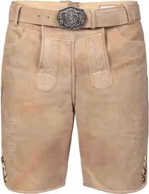 Kurze Wildbock Lederhose Balthasar hell beige mit Stickerei Gr. 44-64 (DE/NL/SE/PL, Numerisch, 52, Regular, Regular, Beige)