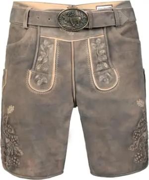 Exklusive Kurze Hirsch Lederhose grau braun Stefan Gr. 46-60 (DE/NL/SE/PL, Numerisch, 48, Regular, Regular, Braun)